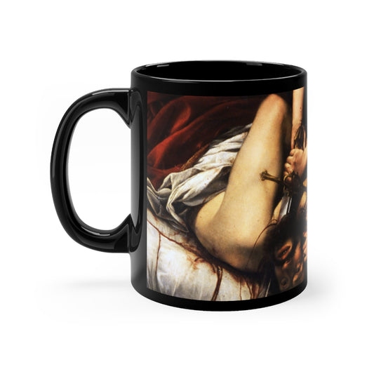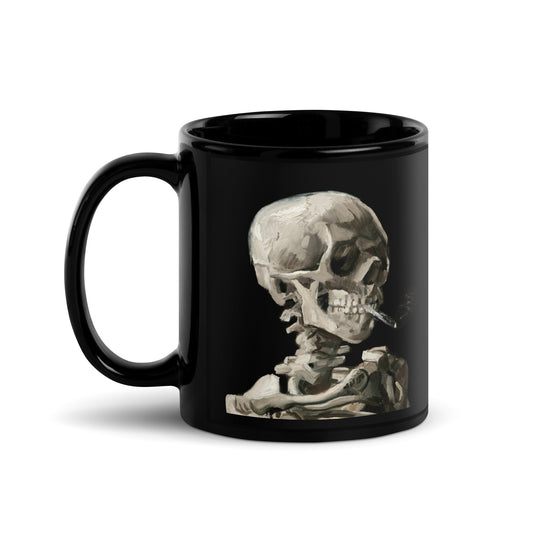 Skeleton with a Burning Cigarette, 11oz Black Mug