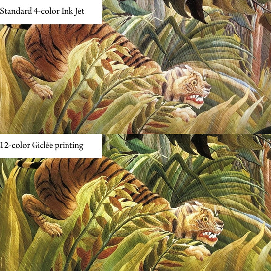 To ensure the best possible reproduction, Obelisk uses Giclée printing (pronounced gee-klay), which uses pigment-based archival inks instead of standard dye-based inks, resulting in more vivid, fade-resistant colors and deeper blacks. Giclée printing also operates at a higher resolution than standard printing, so printed images are more detailed and gradients are smoother.